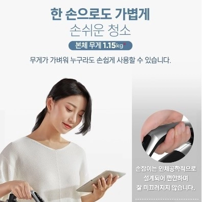 핸디스틱청소기|무선|흡입+물걸레(교체)|흡입력(Pa): 22,350|무게: 1.15kg|소비전력: 320W|BLDC모터|워셔블먼지필터|먼지감지센서|먼지통분리