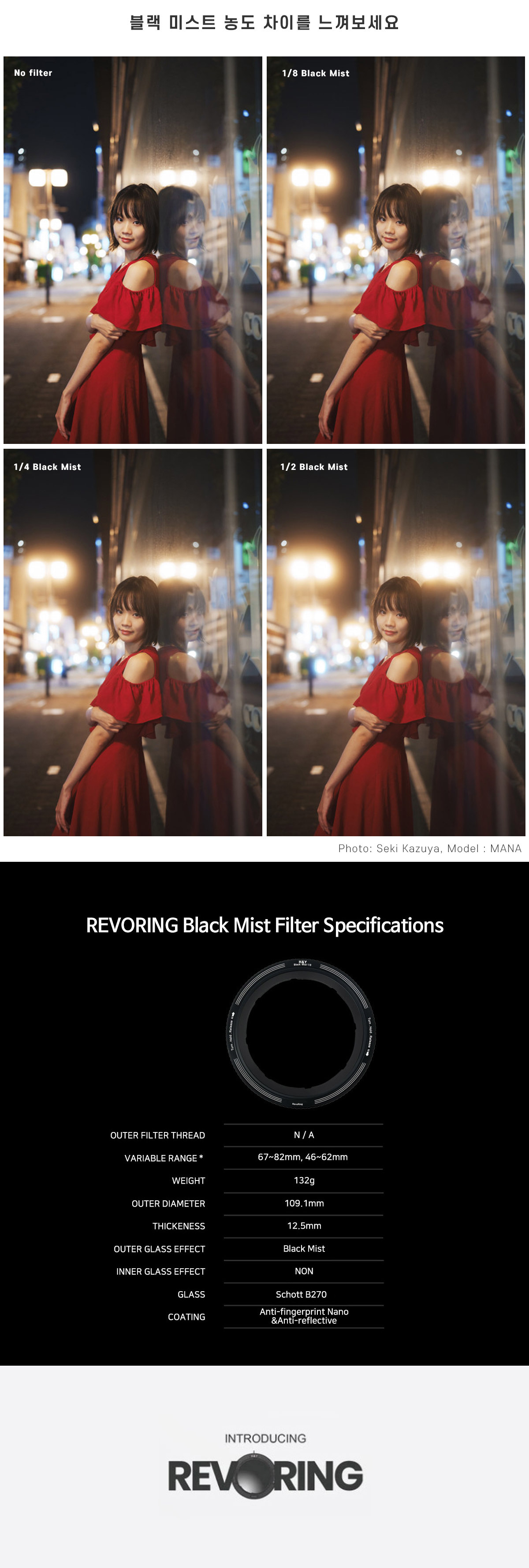 H&Y 레보링 1/4 블랙미스트 67-82mm 가변필터